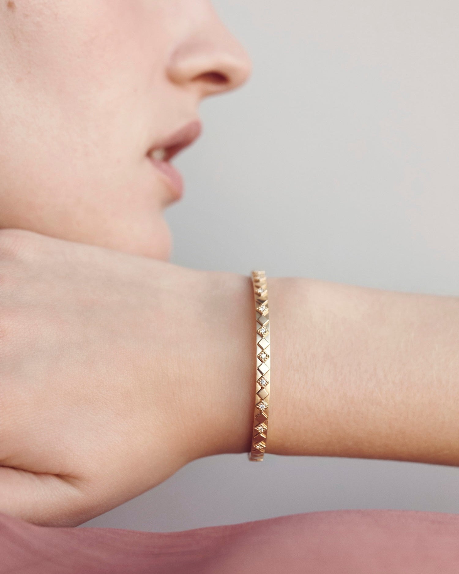 Inspired by the "Third Eye" or Anja Chakra. This bangle is set with your choice of Diamonds, Emeralds, Pink or Blue Sapphires.