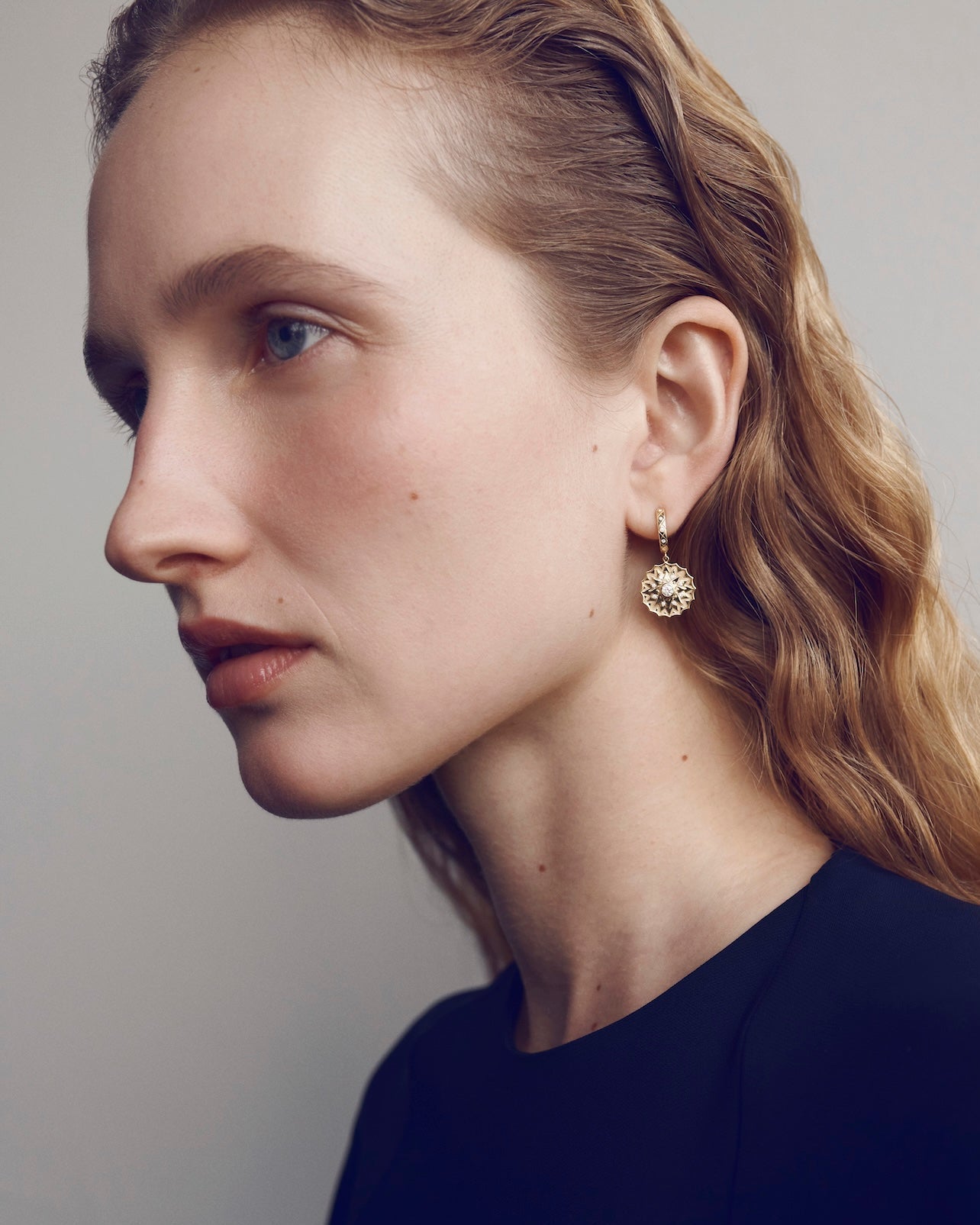 Embrace the cosmic wonder and dreams with our Star Medallion Huggie Earrings reminding you to reach for the stars. Set with a center colored Gemstone stone and Diamonds surround.