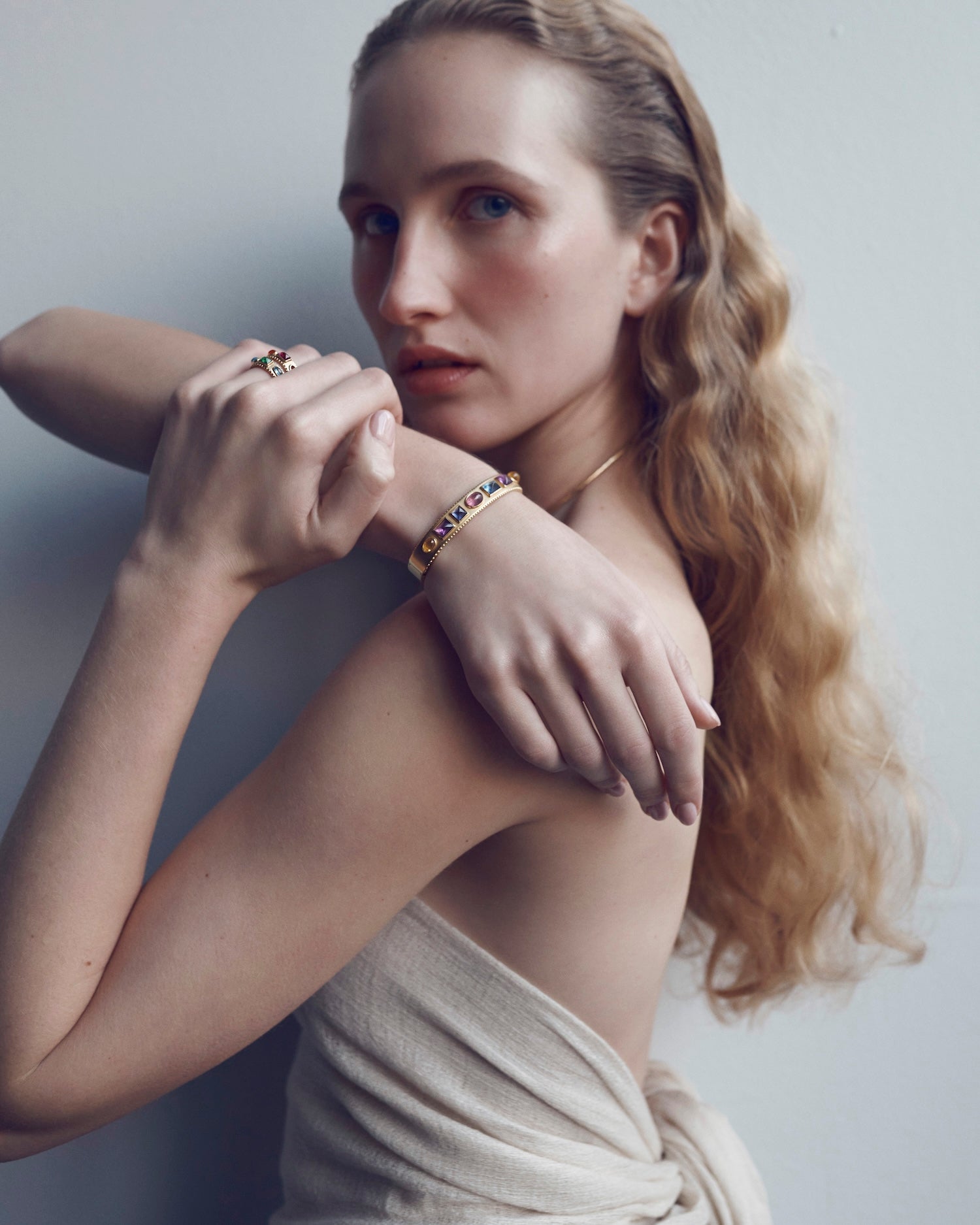 Cabochon Bangles illuminates with smooth Cabochon Stones.
