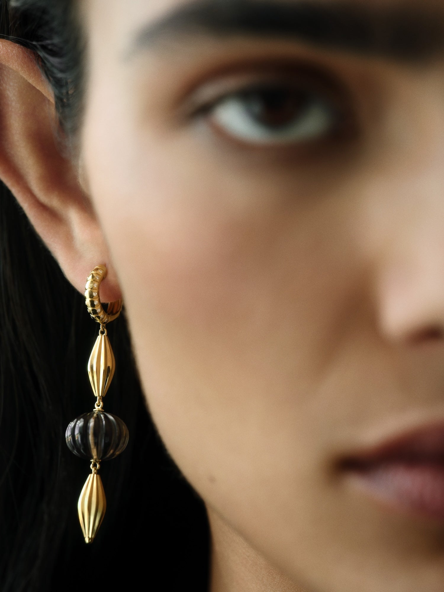 The Sol Collection is inspired by the warmth and energy of the sun. Each piece is crafted in 18k yellow gold and features carved stones that capture and reflect light in beautiful, natural ways.